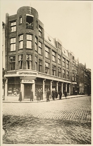 - Het Steegoversloot met het pand van Kantoorboekhandel H. Stumpel. Ca. 1925 op de hoek van Steegoversloot en de Voorstraat.