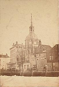 - Het Groothoofd met de Groothoofdspoort vanaf de Oude Maas. Links van de poort Hotel Bellevue, rechts stoombootdienst Telegraaf.