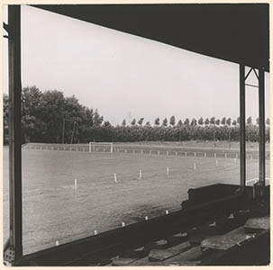 - Het sportpark aan de Reeweg, gezien vanaf de overdekte hoofdtribune.