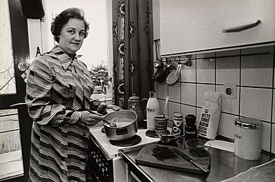 - Streefkerkse dame in haar keuken bezig met het maken van zwangpap