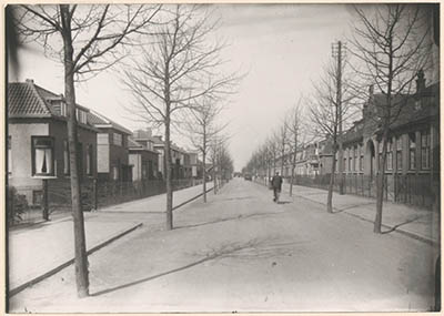 - Rechts de Hervormde School aan de Lindelaan in Zwijndrecht, gezien vanaf de Burgemeester de Bruïnelaan naar het westen.