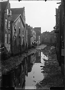 - Eb in de Voorstraatshaven, gezien vanaf de Pelserbrug richting de Lombardbrug. Linksmidden de Manhuissteiger. De huizen links staan aan de Grotekerksbuurt, rechts aan de Voorstraat.