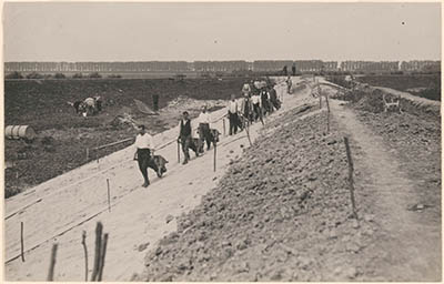 - arbeiders / werklieden inpolderingen kruiwagens sluizen