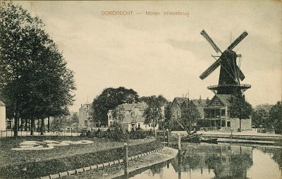 - Op de kaart staat "Molen Vriezebrug". De juiste naam van de molen luidt "De Maagd" Het plantsoen links op de foto is de Vest en links op de achtergrond is de Vriesebrug zichtbaar.