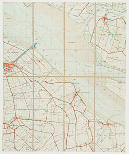 - Topografische kaart Middelharnis, rechtsboven Goudswaard, rechtsonder Den Bommel, linksonder Nieuwe-Tonge, linksboven Haringvliet.