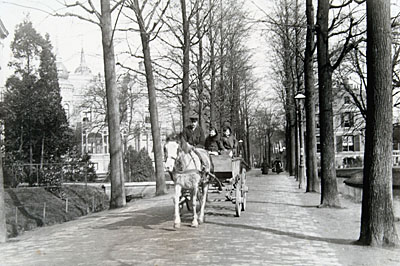 - Van Hoogstratensingel langs Park Merwestein naar de Sint Jorisweg gezien. Links de villa van Lebret.