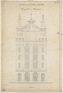 - De bouwtekening van de voorgevel van de watertoren aan de Noordendijk.
