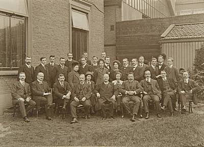- Groepsportret van directie, administratief en technisch personeel van de Meterfabriek.