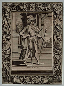 - De Graven van Holland, naar de op hout geschilderde afbeeldingen uit het Karmelieter klooster te Haarlem; serie van 34 stuks, figuren ten voeten uit; afmetingen: Hg. met rand 33.3, br. 24.3 c. Uit: Tooneel. der Vereenigde Nederlanden, door H. Halma, uitgegeven in 1725; de gravures zijn eerder gebruikt in Hollandse jaar-boeken of Rijm-kronijk, door Melis Stoke, 1699 (Muller 4; Van Someren 1 nr. 102). N.B.: Dirk I en Dirk II, Arnulf, Willem II, Floris V en Jan III ontbreken.