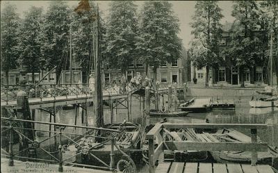 - De Lange IJzerenbrug over de Nieuwe Haven. Aan de overzijde de Lange IJzerenbrugstraat die uitkomt op de Binnen Walevest.