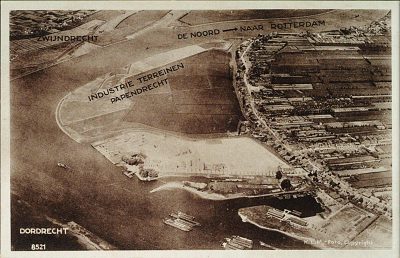 - Luchtfoto van Slobbegors, Westeind en Jachthaven in Papendrecht. De industrieterreinen zijn gedeeltelijk aangelegd. Een groot deel van de grond is ingericht als sportterreinen.
