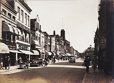 - autobussen bakfietsen bankgebouwen fietsers kledingzaken / modezaken lantaarns / straatverlichting meubelhandels / woninginrichting oldtimers postkantoren voetgangers zonweringen
