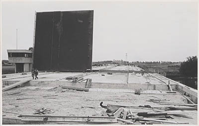 - Bouw van de brug over het Wantij in de Rondweg, gezien naar het zuiden.