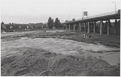- Da Costastraat in Zwijndrecht bij de oprit van de verkeersbrug over de Oude Maas ten tijde van de aanleg van de Drechttunnel.