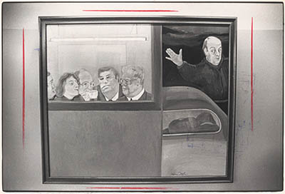 - Olieverfschilderij van Rein Dool met het Dordtse college van burgemeester en wethouders. V.l.n.r. de wethouders ir. J. Zaaijer. drs. N. L. P. Lamers, P. C. Janse, C. de Kovel en burgemeester van Zuuren. Rechts, apart, de wethouder F. W. Kraayeveld.
