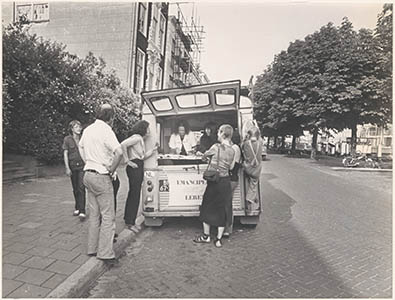 - De zgn. boekenbus van de emancipatiebeweging en feministische boekhandel Brood en Rozen op de Wolwevershaven.