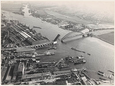 - Luchtfoto van de Brug over de Noord tussen Hendrik-Ido-Ambacht en Alblasserdam. Bij de geopende klep ligt de kabelfabriek in Alblasserdam.