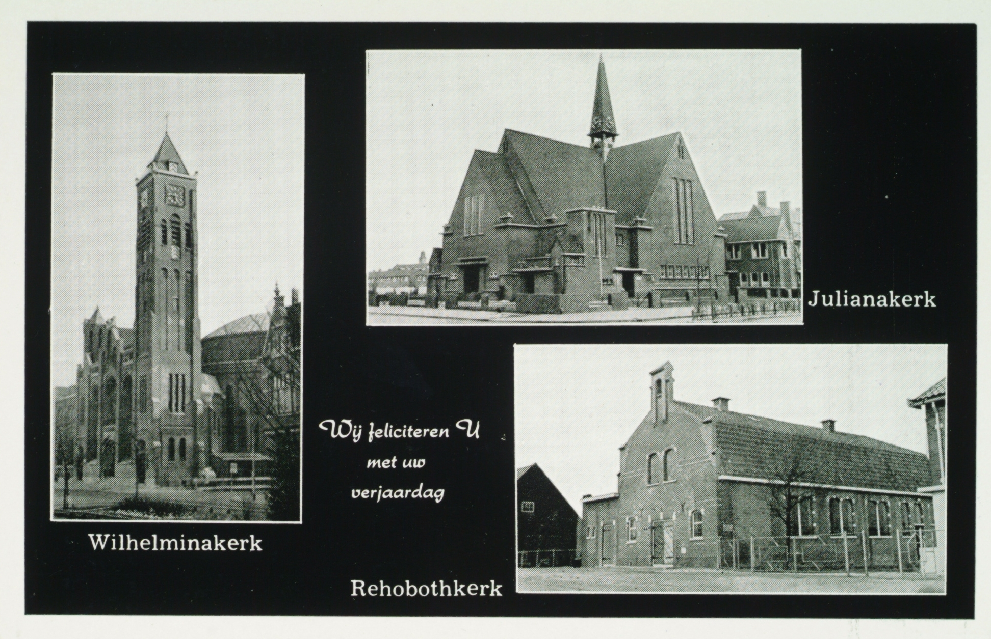 L-De Wilhelminakerk aan de Blekersdijk. RB-Julianakerk aan de krispijnseweg. RO-Reobothkerk Oudendijk.