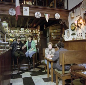 - Interieur van restaurant / pizzeria Picola Italia op de Voorstraat, hoek Wijnbrug.