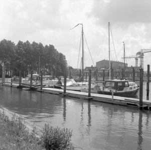 - De Buitenjachthaven vanaf de Zuiderstek in Alblasserdam. Op de achtergrond de loods van Van der Giessen-De Noord.