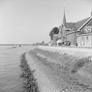 - De Noord langs de Oost Kinderdijk in Alblasserdam. De torenspits is van de Gereformeerde Kerk.
