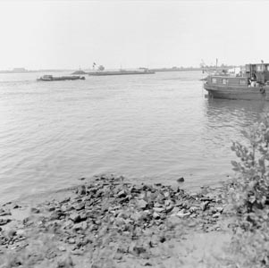 - Knooppunt Beneden Merwede, Nieuwe Merwede en Boven Merwede, gezien naar het zuidwesten vanaf de Rivierdijk t.h.v. De Buurt in Hardinxveld-Giessendam.