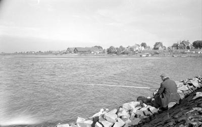 Visser op een kribbe in de Beneden Merwede t.h.v. de Rivierdijk 693 in …