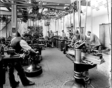 - Draai- en freesafdeling van de Lips-fabriek aan de Spuiweg.
