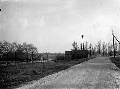 - De Kilkade en de Straatweg (links) naar het zuiden gezien. Geheel links villa Merelhof aan de Straatweg op de hoek van de Krabbeweg. Rechts boerderij Valkenhof.