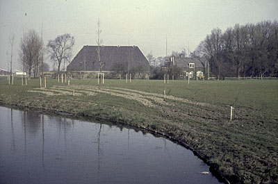 - Hoeve Overkamp aan de Achterweg (rechts). Links de Ton Menkenhal.