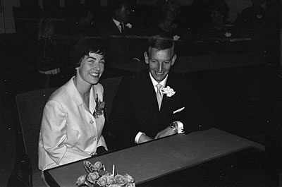 - Bruidspaar in de trouwzaal van het stadhuis.