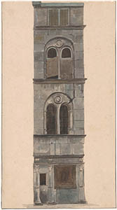 - De voorgevel van de voormalige Steenhouwerskapel aan de Wijnstraat nabij de Nieuwbrug.