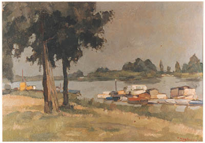 - Foto afkomstig van affiche voor voorjaarstentoonstelling van kunsthandel 'De Rode Deur' in de Groene Zaal van het Hof van 25-04 t/m 10-05-1987. Fotorepro van schilderij ca. 1937.