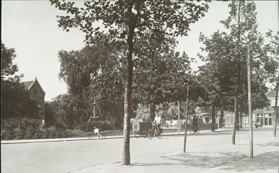 - Het Beverwijcksplein gezien in de richting van de Matthijs Balenstraat. Links het arbeidsbureau.