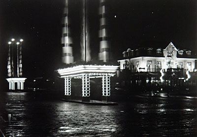 - Bij feestelijkheden voor de opening van de zeehaven stonden "lichteilanden"op het Stationsplein. Het verlichte gebouw is Hotel Ponsen op de hoek Burgemeester de Raadtsingel/Stationsweg..