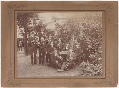 - groepsportretten muziekkorpsen vaandels