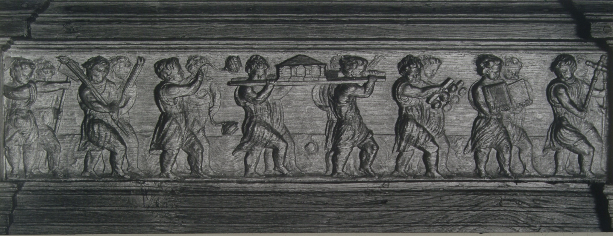 Voorstelling in houtsnijwerk in de bovenranden van de koorbanken in de Grote Kerk