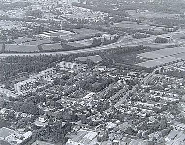 - Luchtfoto van het noordwestelijk deel van de wijk Dubbeldam onder de Dubbelsteynlaan boven links het voetbalstadion van DS'79 aan de Krommedijk