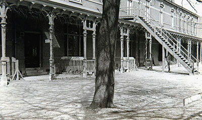 - De tuinzijde van Schouwburg Kunstmin langs de Godfried Schalckensingel.