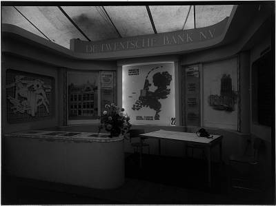 - Stand van de Twentsche Bank aan de Wijnstraat/Scheffersplein op de Dawet