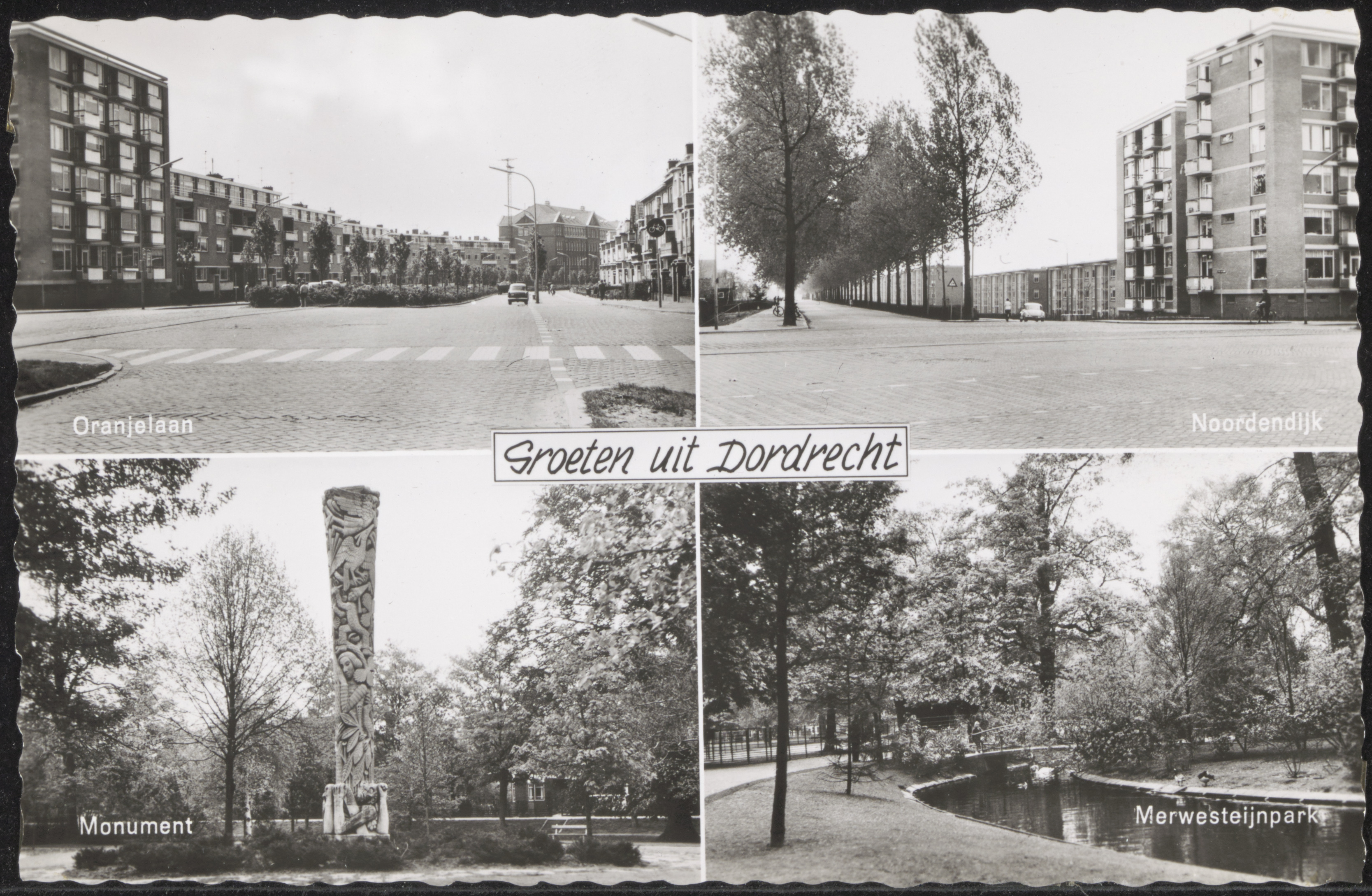 LB: Oranjelaan. RB: Noordendijk. LO: Levensboom van Hans Petri park Merwestein. RO: Park Merwestein.