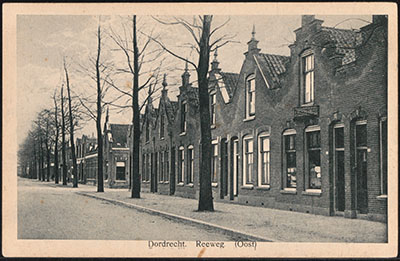 Reeweg Oost in zuidoostelijke richting. Rechts vooraan de kantoorboekhandel van A.M. …