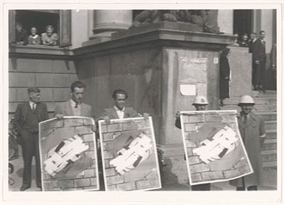 - Viering van de bevrijding van de Duitse bezetting in mei 1945 bij het stadhuis.