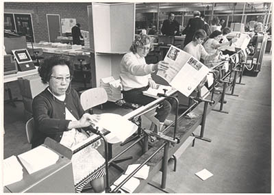 Werkzaamheden in de zetterij, drukkerij en binderij in een nieuw onderkomen op het …