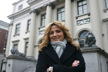 Wethouder Neza Albayrak voor het Dordtse Stadhuis