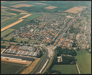 - Luchtfoto van Numansdorp vanaf de Dorpshaven naar het noorden.