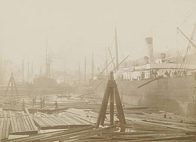 - arbeiders / werklieden dukdalven / meerpalen havens houtindustrie houtvlotten vrachtboten