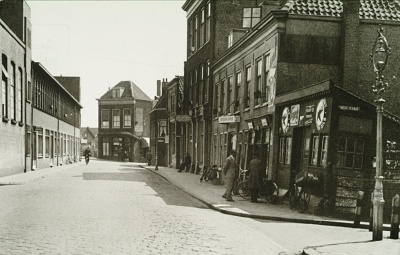 Fietsenhandel J. de Roo op de Vest, hoek Veststraat (rechts), gezien richting …