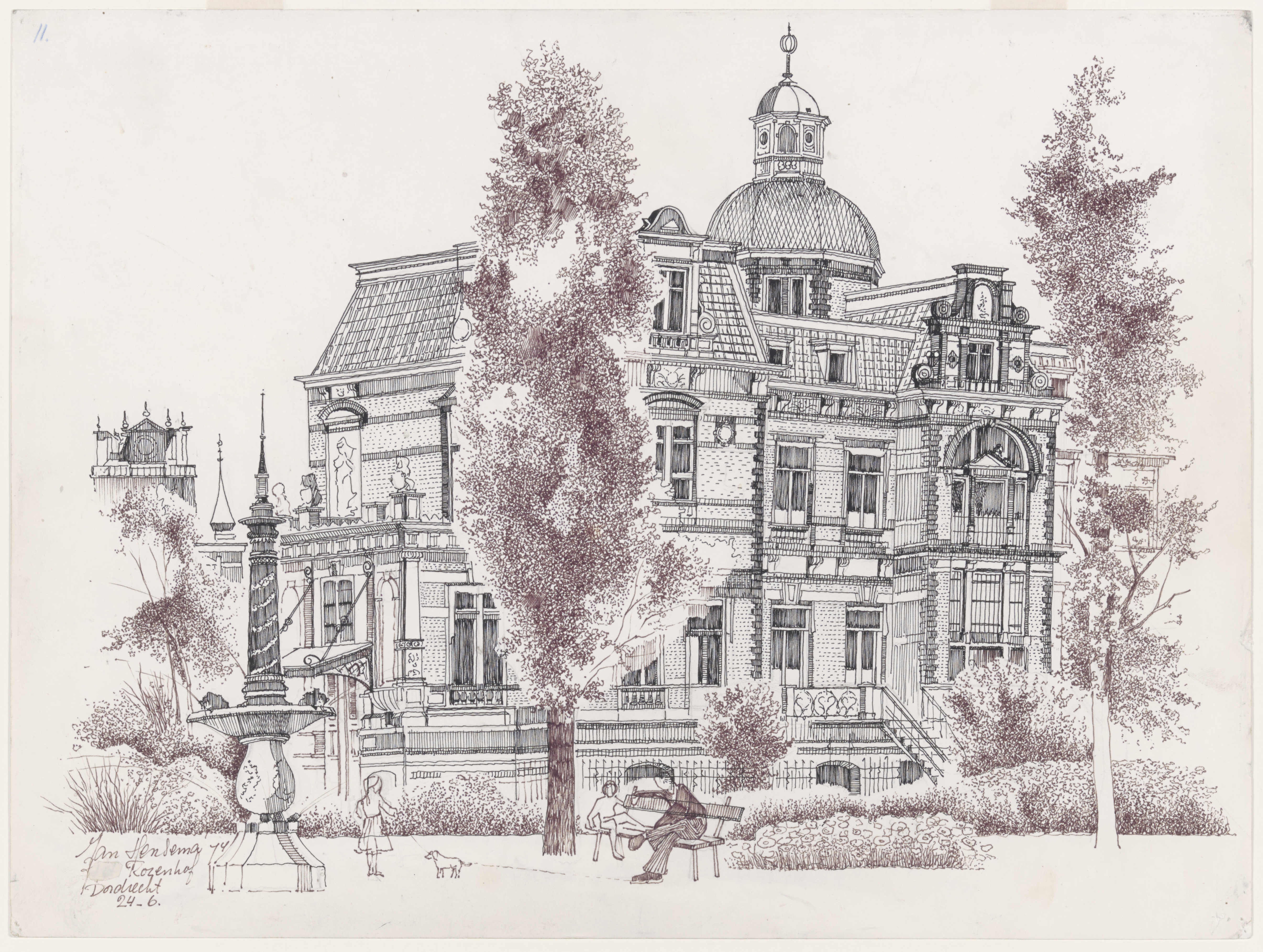 tekening Jan Hensema, Rozenhof, 24-6-1974