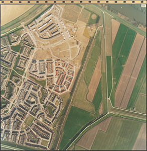 - Luchtfoto van het oostelijk deel van Stadspolders. Links van onder naar boven Aletta Jacobs-erf, Henriëtte Roland Holst-erf en Mina Kruseman-erf. In het midden van onder naar boven de Bildersteeg, rechts daarvan de Wantijdijk en onderin de Zeedijk.